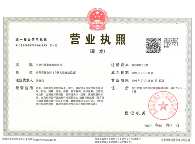 十七載砥礪前行,現(xiàn)如今碩果累累。貝德科技集團(tuán)擁有消防、環(huán)保產(chǎn)品相關(guān)發(fā)明專利17項(xiàng),先后獲得國家高新技術(shù)企業(yè)、浙江省科技型企業(yè)、中國水利企業(yè)協(xié)會(huì)流體裝備專業(yè)委員會(huì)理事單位、誠信民營企業(yè)、2019年度放心消費(fèi)單位等榮譽(yù),并通過要求極高的消防產(chǎn)品美標(biāo)UL、歐盟CE認(rèn)證,以及通過ISO9001質(zhì)量管理體系、ISO14001環(huán)境管理體系認(rèn)證以及ISO18001職業(yè)健康安全管理體系認(rèn)證。